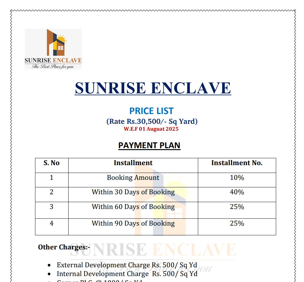• Sunrise Enclave is perfect for both end-users looking to build dream homes and investors seeking valuable property appreciation in Greater Noida West.